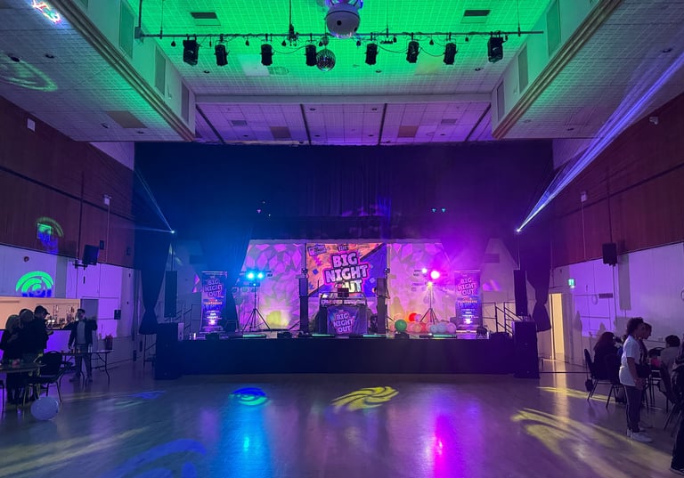 As well as programming your event we also offer a range of affordable professional audio, lighting and staging equipment, setups and technicians for your event.